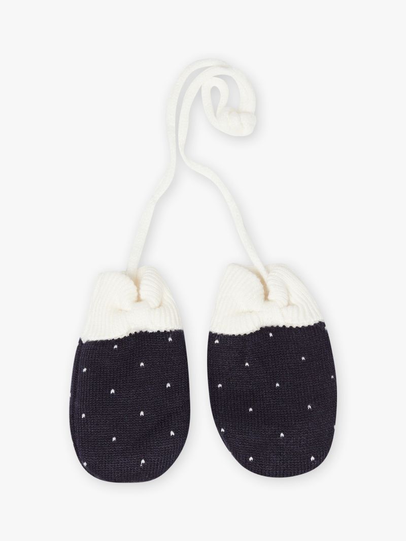 Тъмносини плетени ръкавици с принт Сърце за бебе момиче GAN