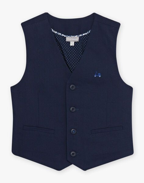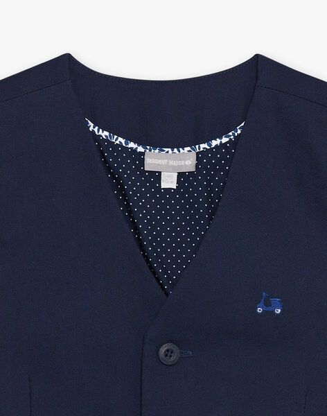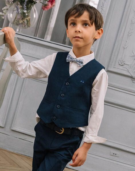 Елек от тъкана материя памук с копчета отпред и два джоба, с малка елегантна бродерия на гърдите. С ефектна памучна подплата.