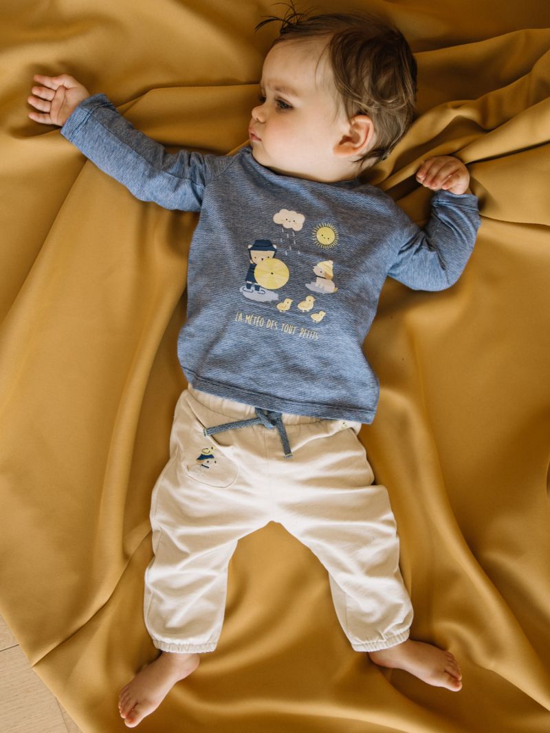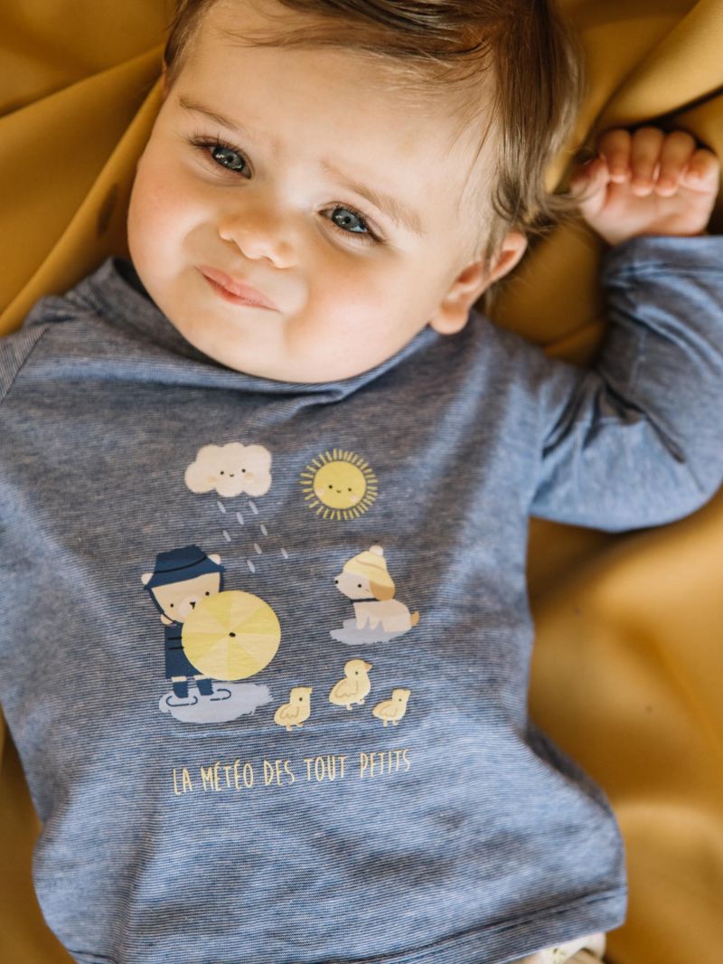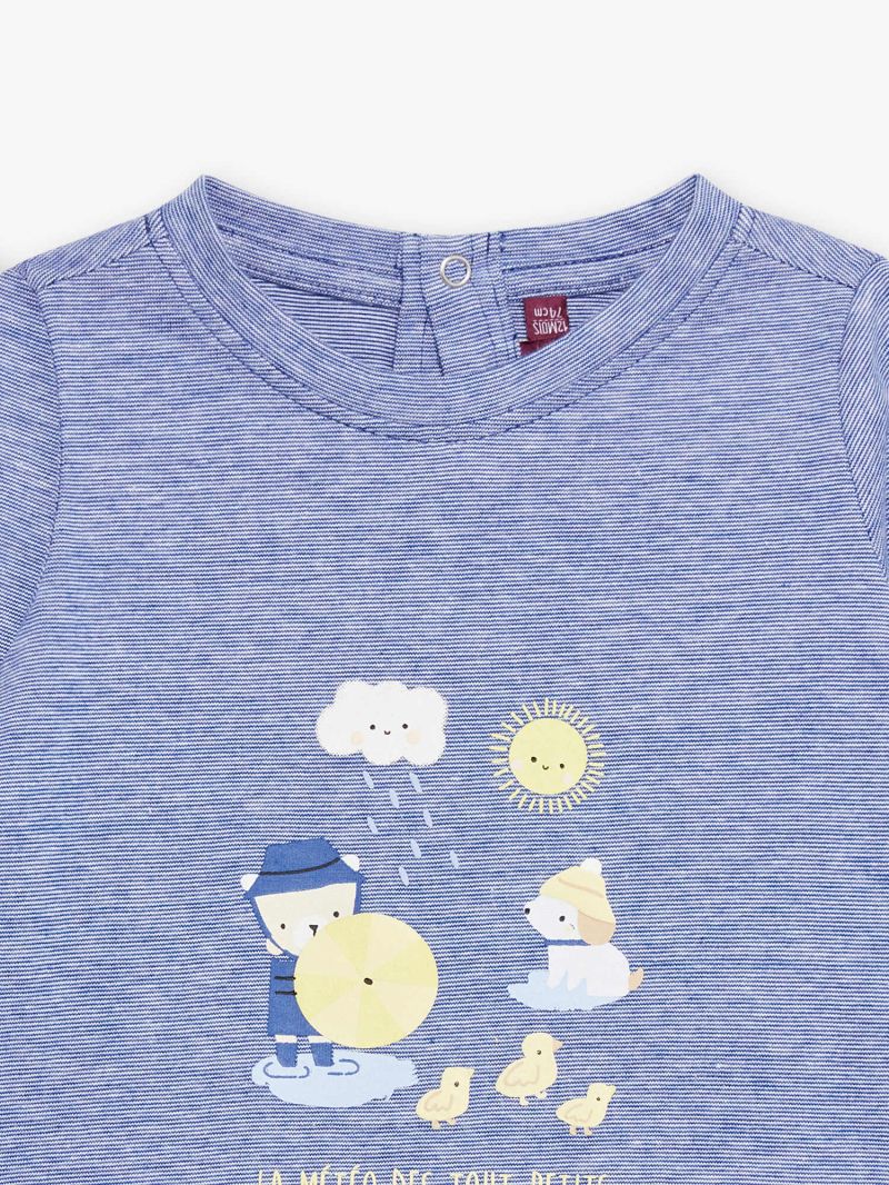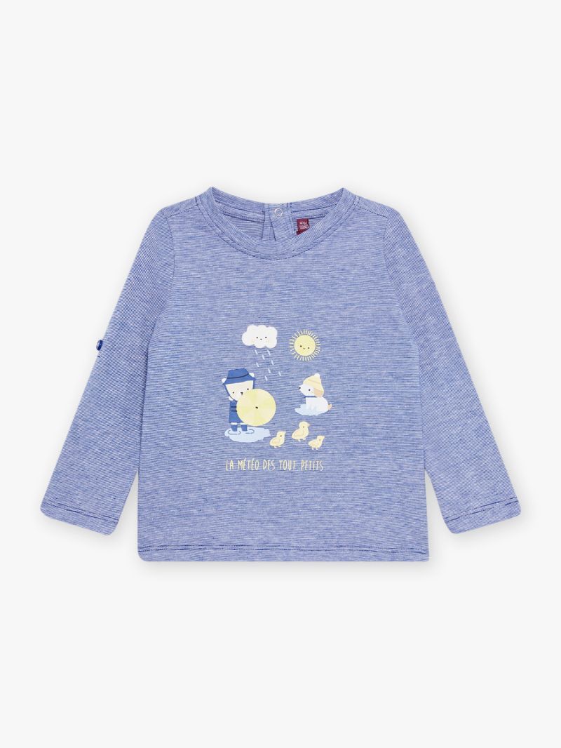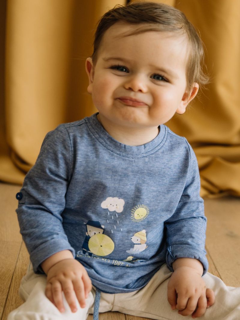 - Памучна блуза с дълги ръкави в принт на деликатно синьо и бяло райе