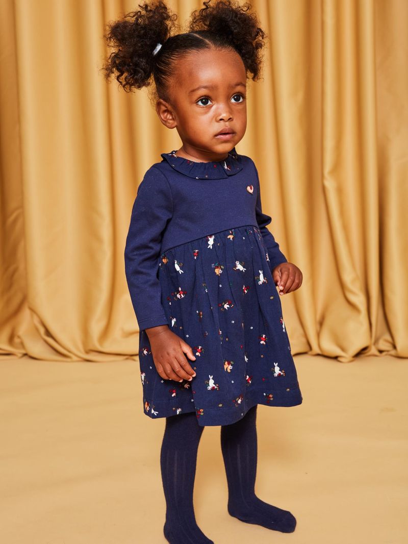 Тъмносиня рокля от две материи