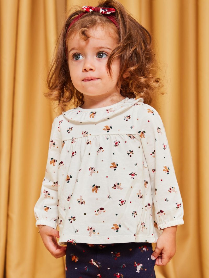 - Блуза от тъкан памук в основен цвят екрю с тематични мотиви