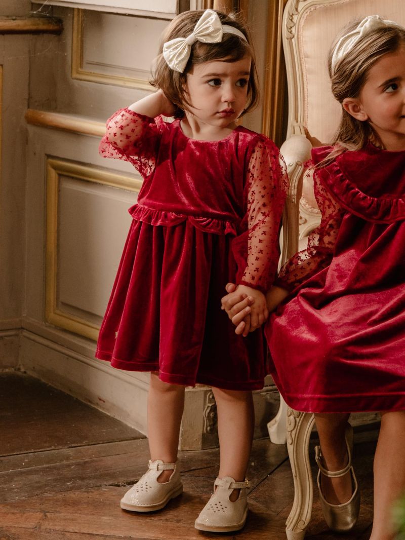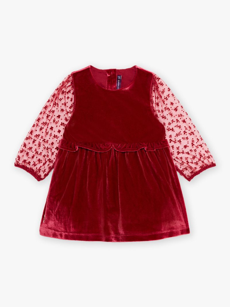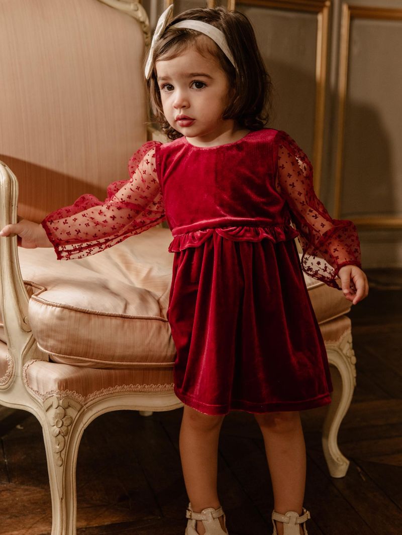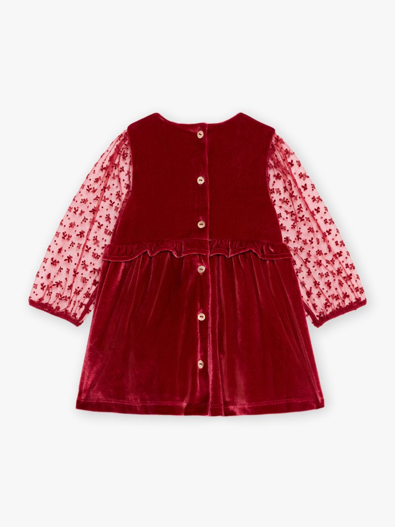 - Материя от кадифе и тюл в тъмночервен цвят