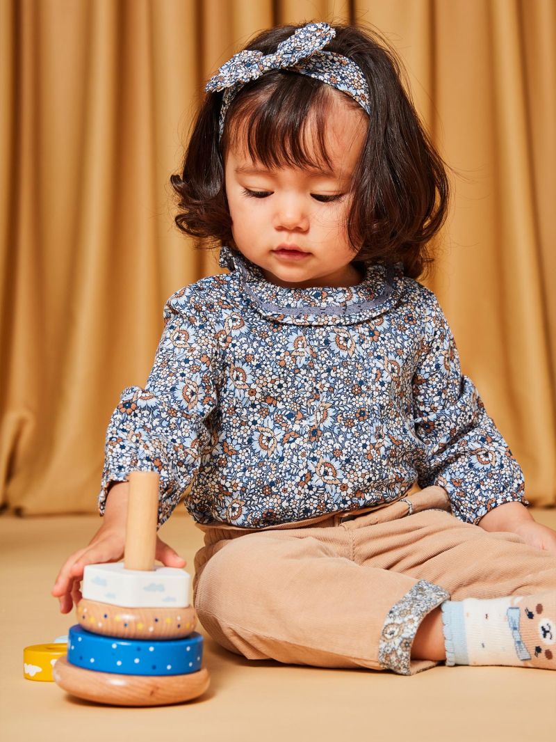- Флорален десен в бежови, бели, кафяви и сини тонове