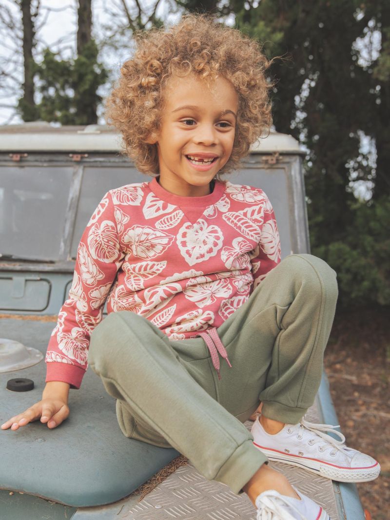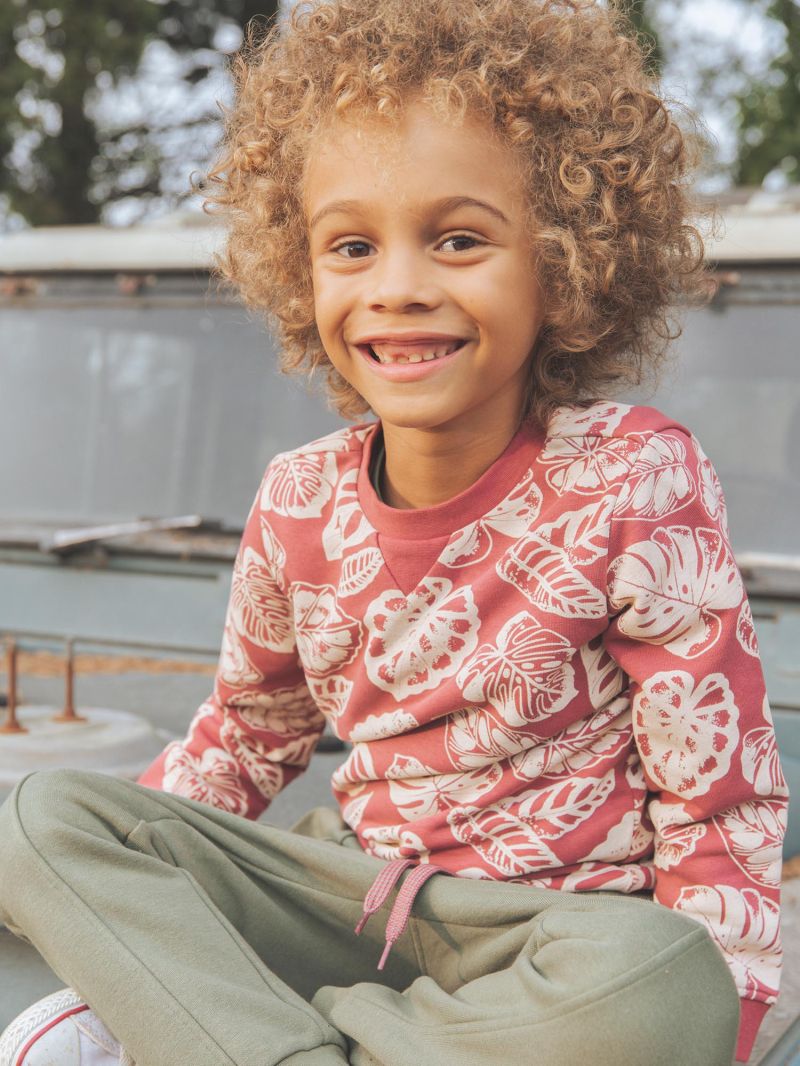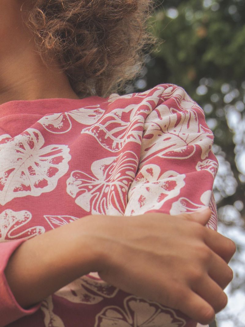 Суичър в цвят теракота с тропически мотиви FICOLAGE