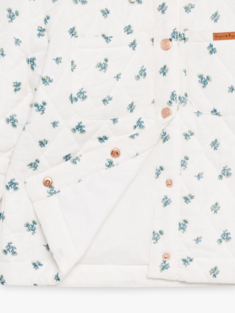 - Капитонирана тъкана материя от памук в цвят екрю с флорален десен