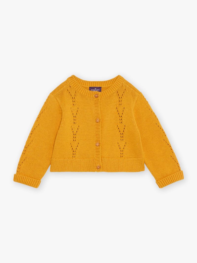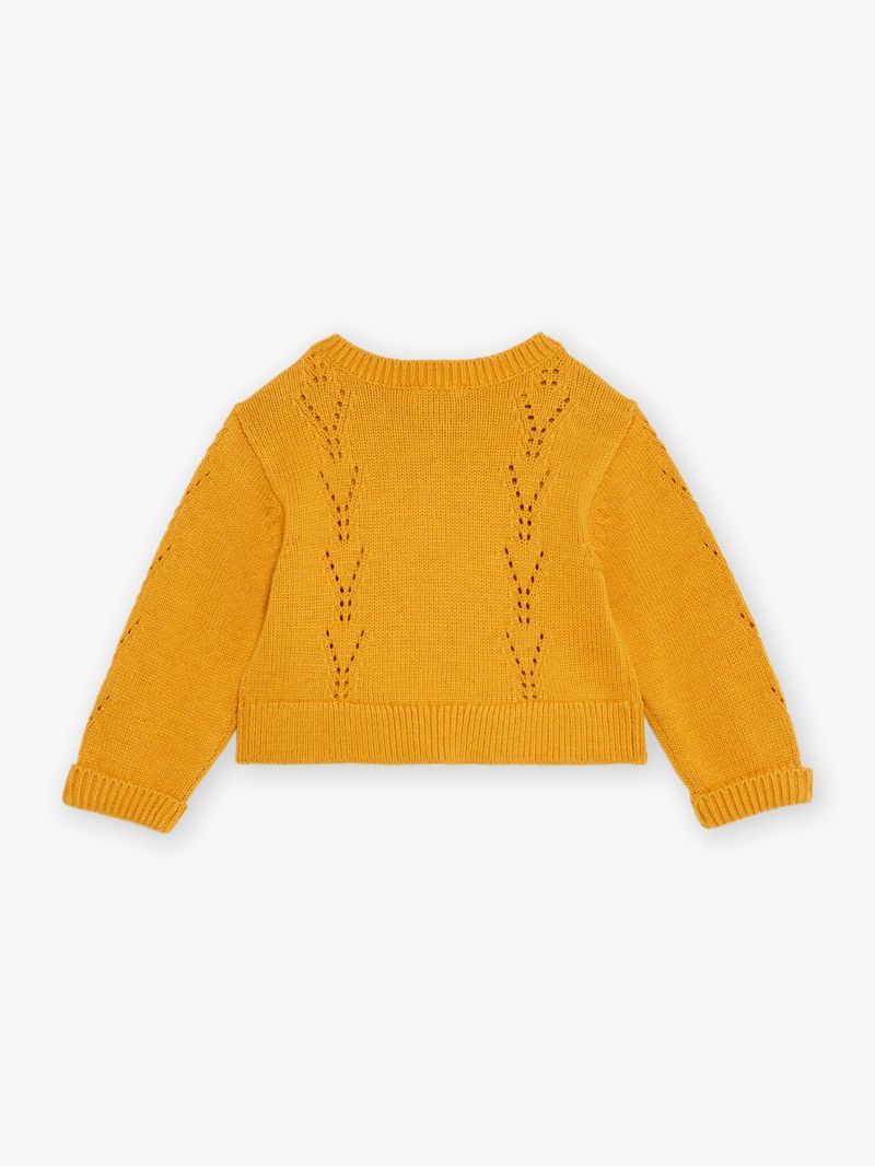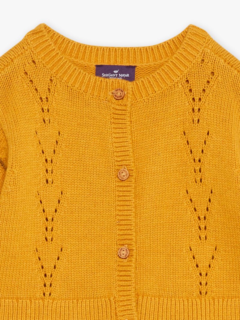 - Ажурно плетиво със съдържание на вълна в жълто кехлибарен цвят
