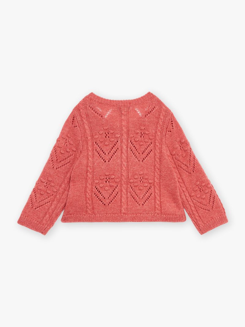 - Материя от ажурно плетиво със съдържание на вълна в розов цвят