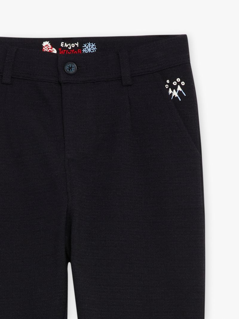 Изключителен класически чино панталон в тъмносин цвят, който придава на панталона не само универсалност, но и му позволява да се съчетае перфектно с различни стилове и цветове. Съчетайте го с риза и създайте елегантен парти тоалет, подчертаващ индивидуалността и вашия стил.