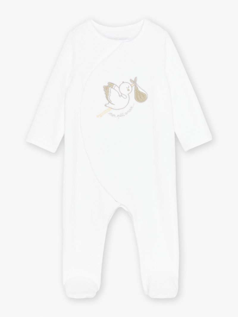 - Диагонално предно откопчаване с копчета тик-так, на дъното и от вътрешната страна на крачолите, това улеснява преобличането на бебето
