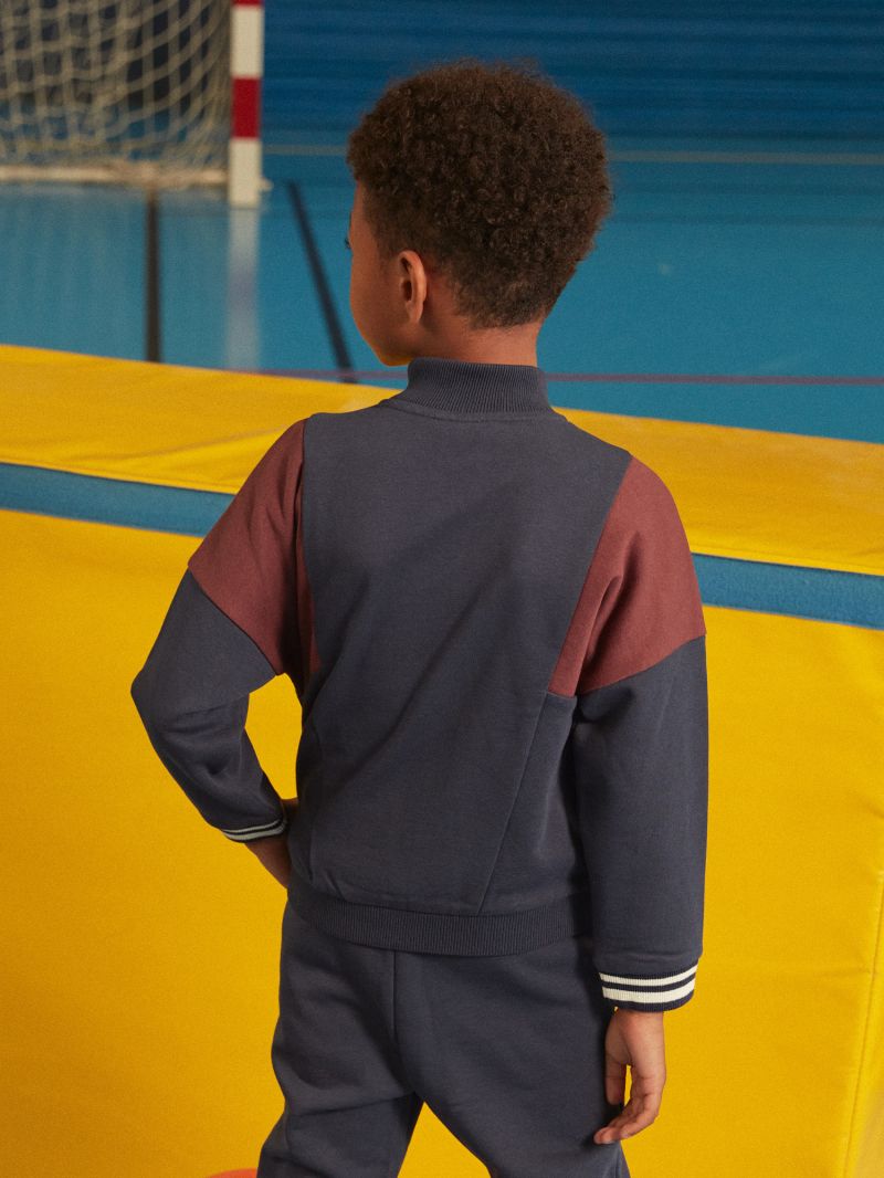Тoва горнище за джогинг в тъмносин цвят с платки в цвят бордо, бързо ще стане фаворит в гардероба на вашето дете. Изработено от качествен памук и предлага изключително удобство и свобода на движение. За завършен аутфит, препоръчваме да комбинирате с подходящо долнище!