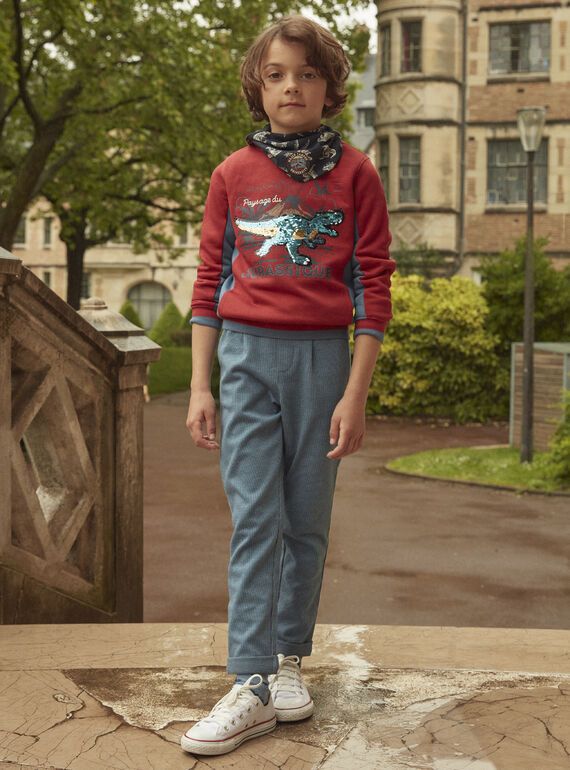 Този суичър с мотив Дино от пайети е истински хит сред децата. С двулицевия динозавърски мотив от пайети, който може да променя визията си, той създава забавно и интерактивно преживяване. Контрастните надписите добавят стилен акцент, докато рипсените краища на яката, маншетите и талията осигуряват комфортно и плътно прилягане. Идеален за малки изследователи, които искат да се забавляват и изглеждат стилно едновременно.