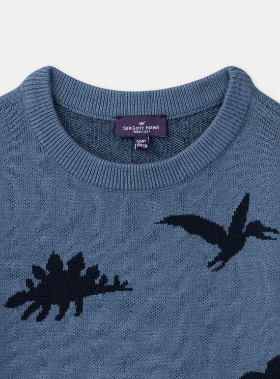 - Мек и топъл пуловер от тъкан памук в основен син цвят с десен