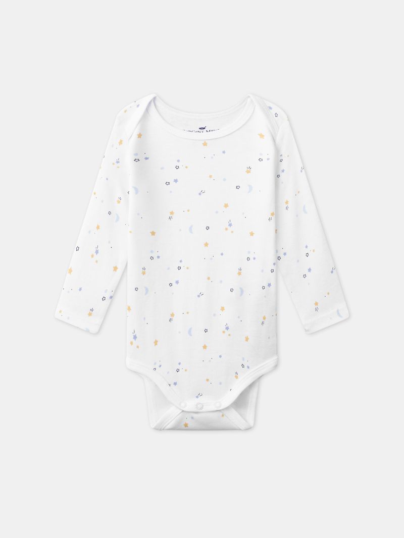 - 1 боди в цвят екрю с десен на луна и звезда в нежни небесносини, охра тонове