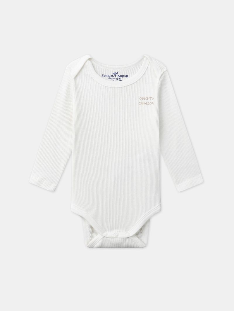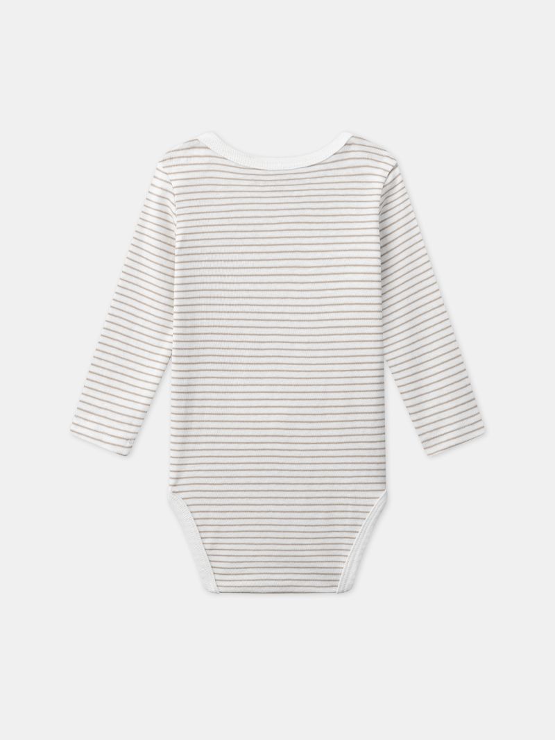 - 1 боди с десен на райе в светлобежови тонове с малка апликация с мотив на гърдите