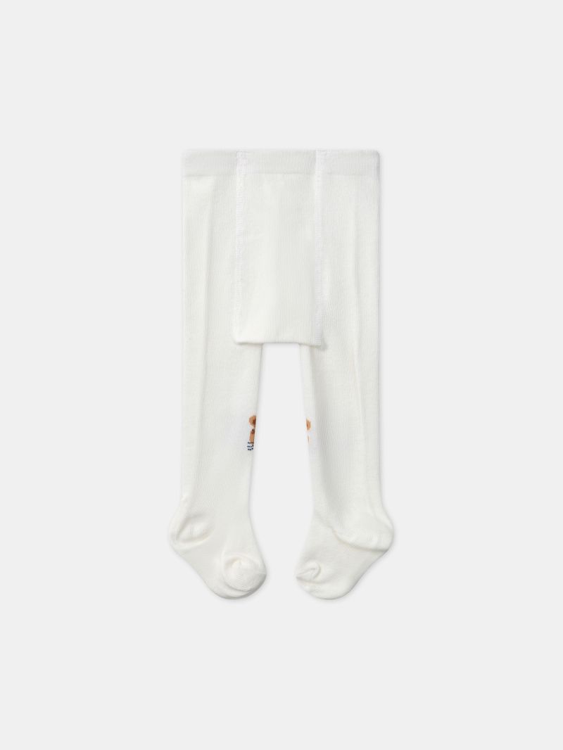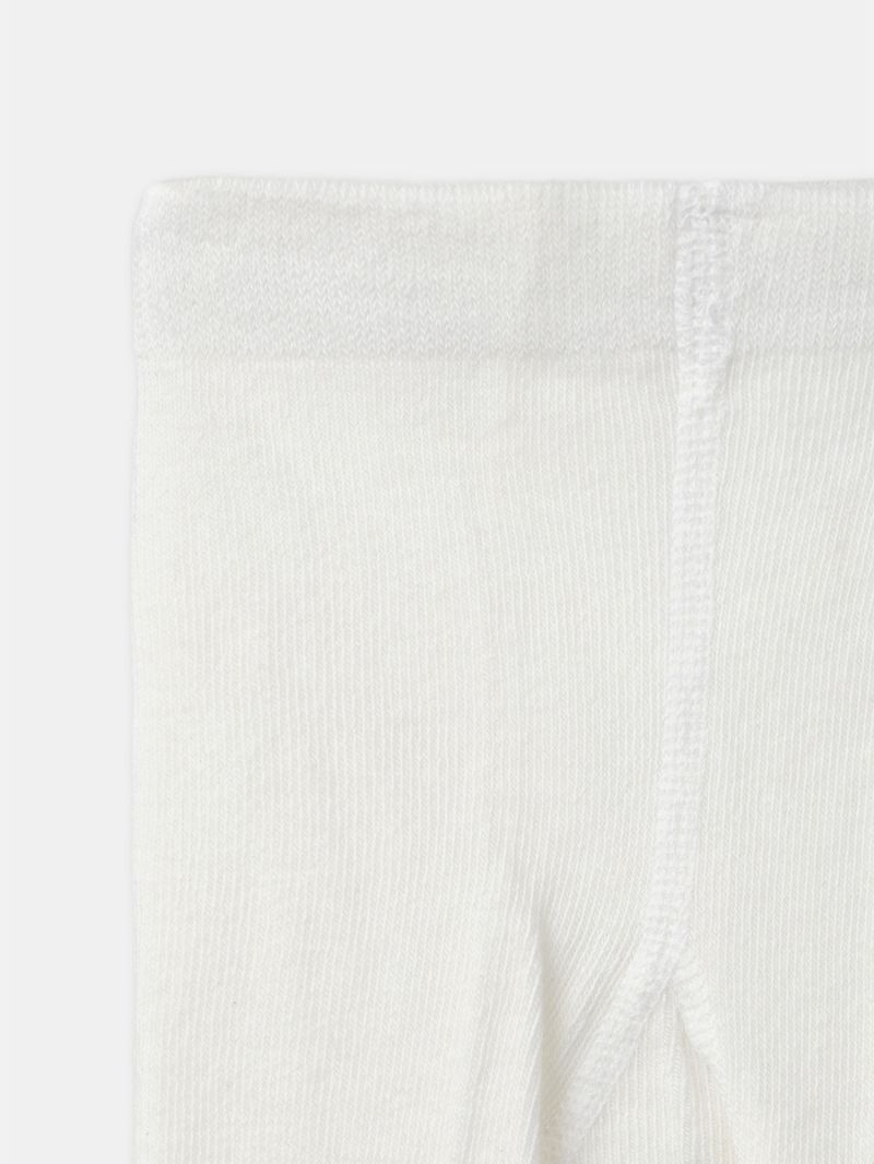 - Рипсени чорапогащи от мека памучна смес с фина плетка в основеен цвят екрю с жакардов мотив на леопард на коленете в карамелени тонове