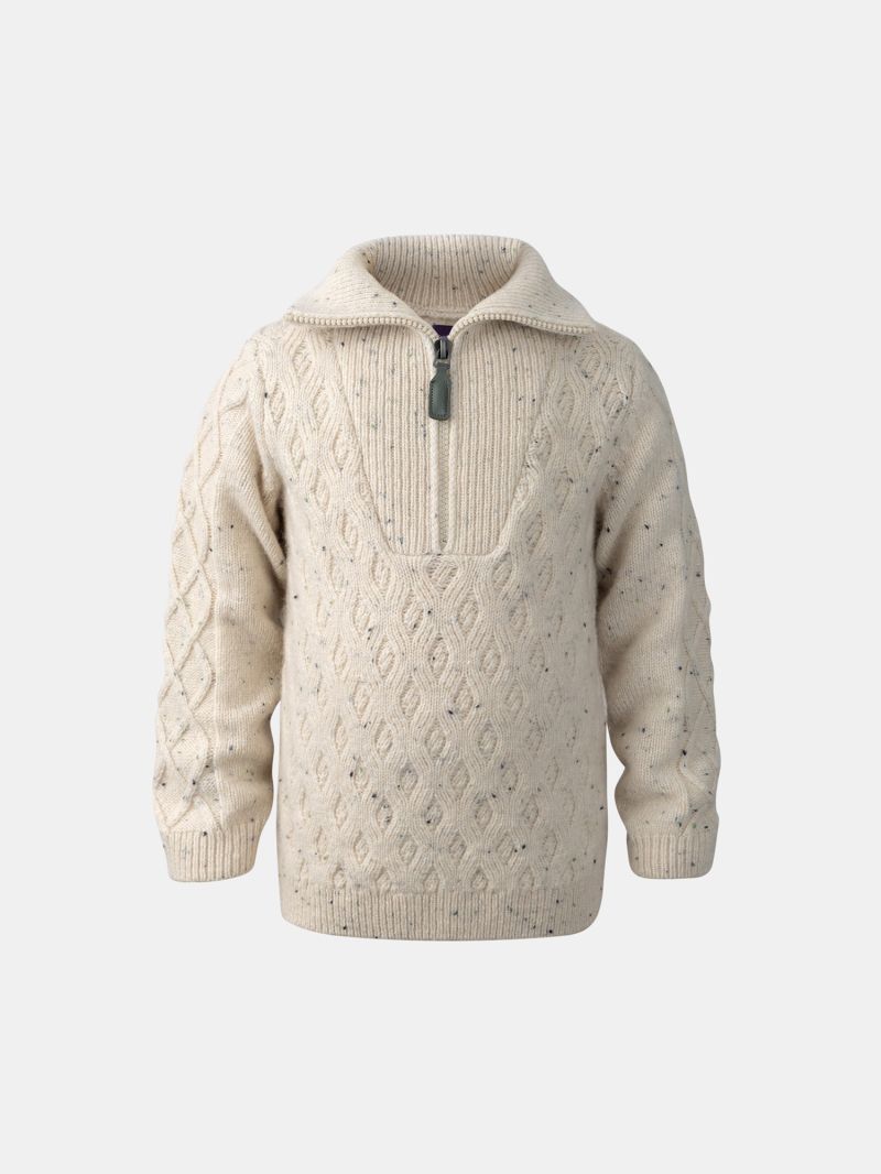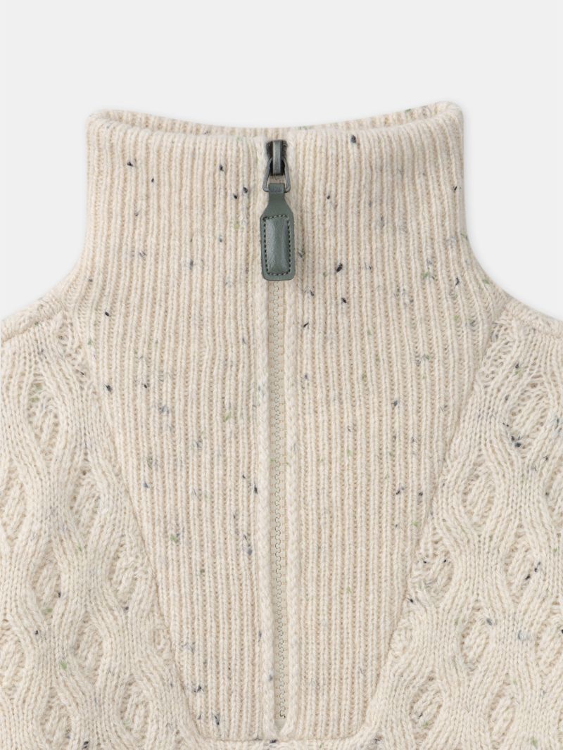 - Столче яка с ластична плетка с откопчаване с цип с ефектен контрастен плъзгач, за лесно обличане и събличане на пуловера