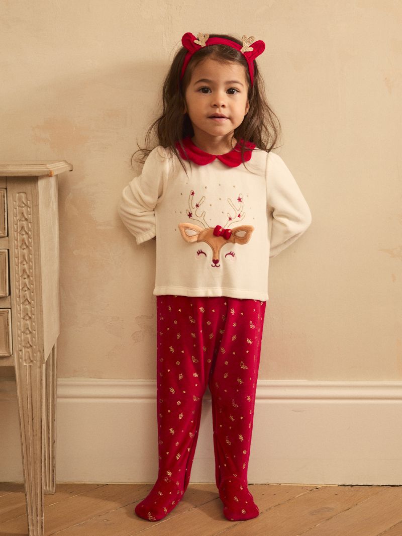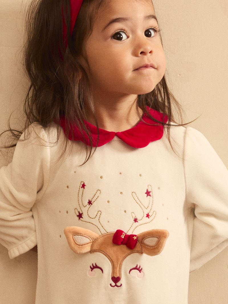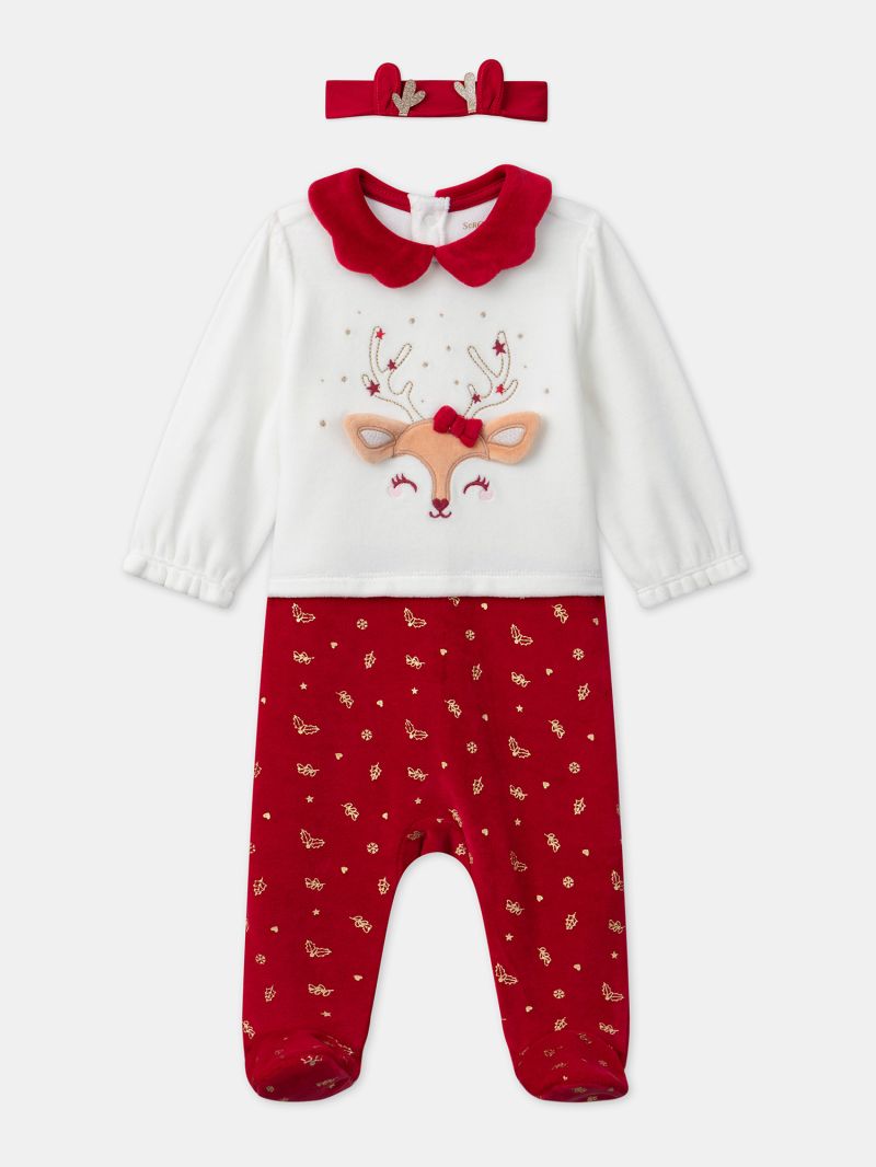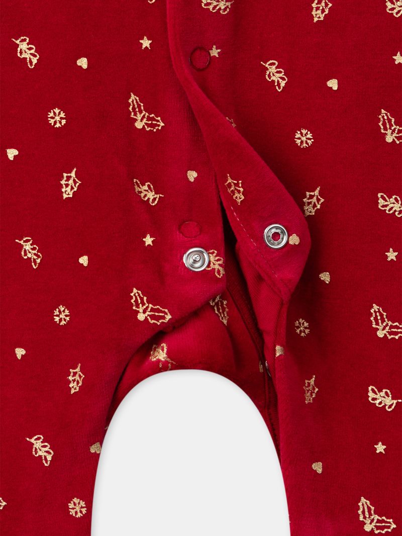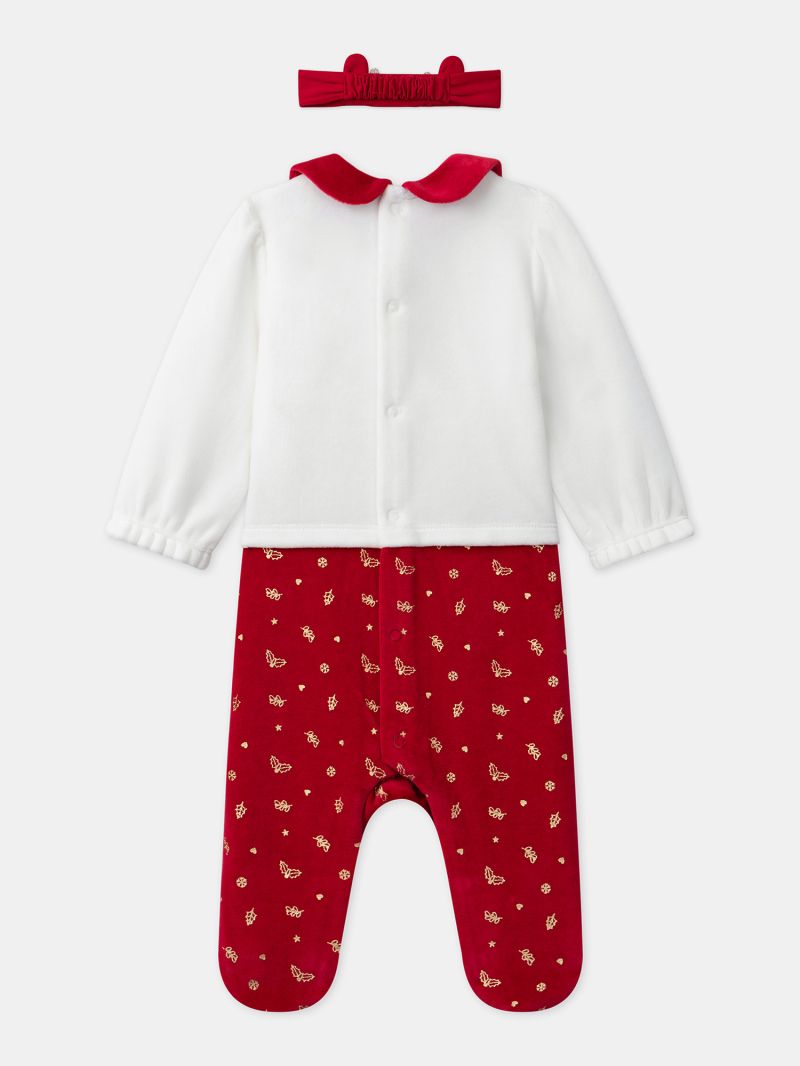 Плюшен ромпър с десен, с коледен мотив и лента за коса