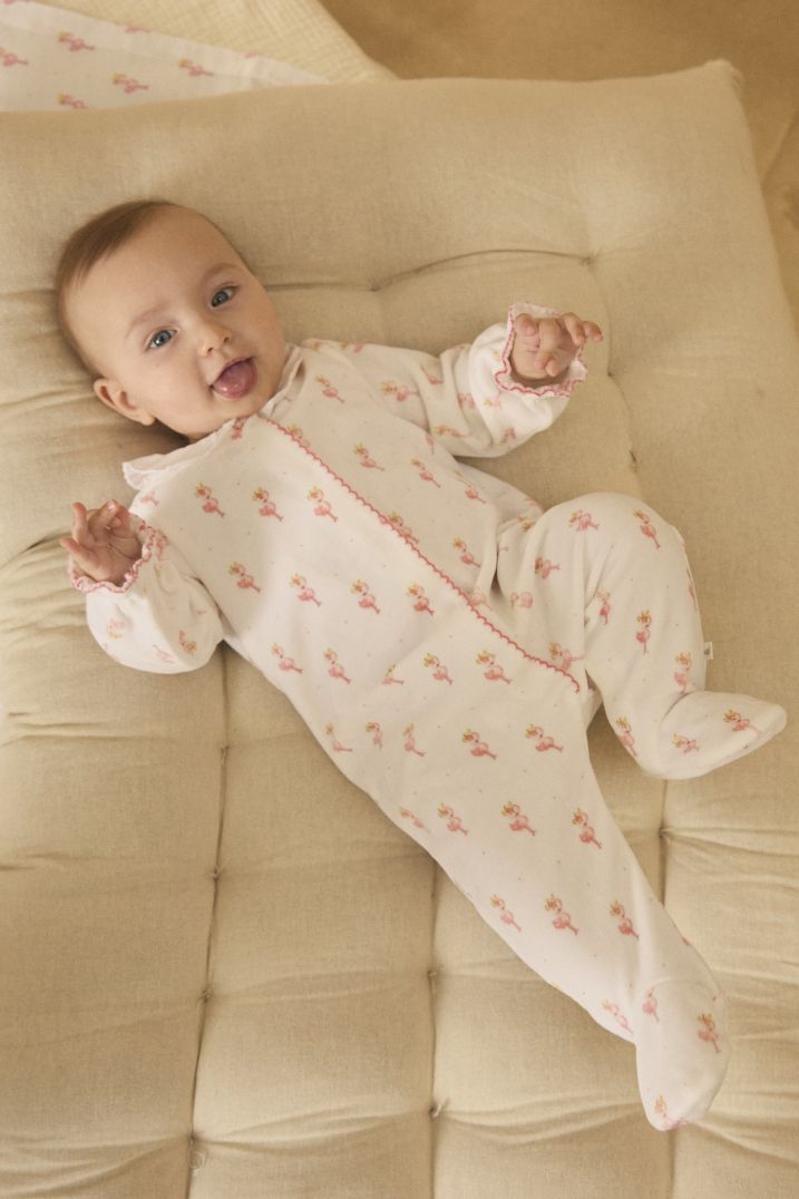 Плюшен ромпър с десен от органичен памук