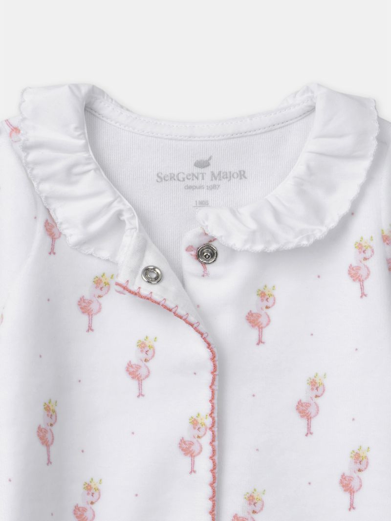 - Десен на фламинго в нюанси на светлорозово, пепел от рози, анасоново зелено и ябълково зелено