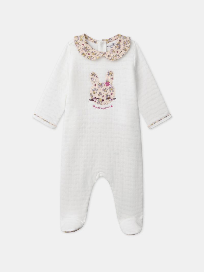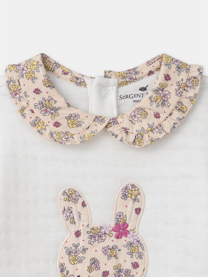- Апликация под яката с мотив на муцунка на зайче от поплин с флорален десен