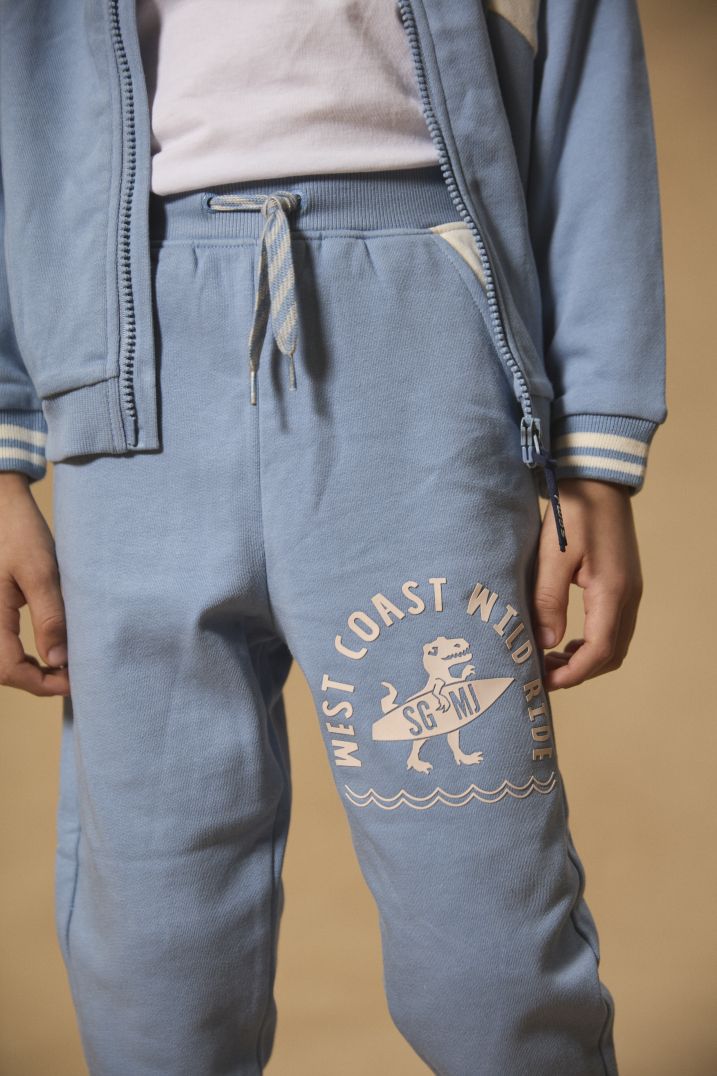Тoва долнище за джогинг в светлосин цвят бързо ще стане фаворит в гардероба на всяко дете. Предлагайки комбинация от удобство и стил, с талия с ластик за лесно преобличане и връзки, които позволяват идеално прилягане. За завършен аутфит, препоръчваме съчетаването му с подходящо горнище!