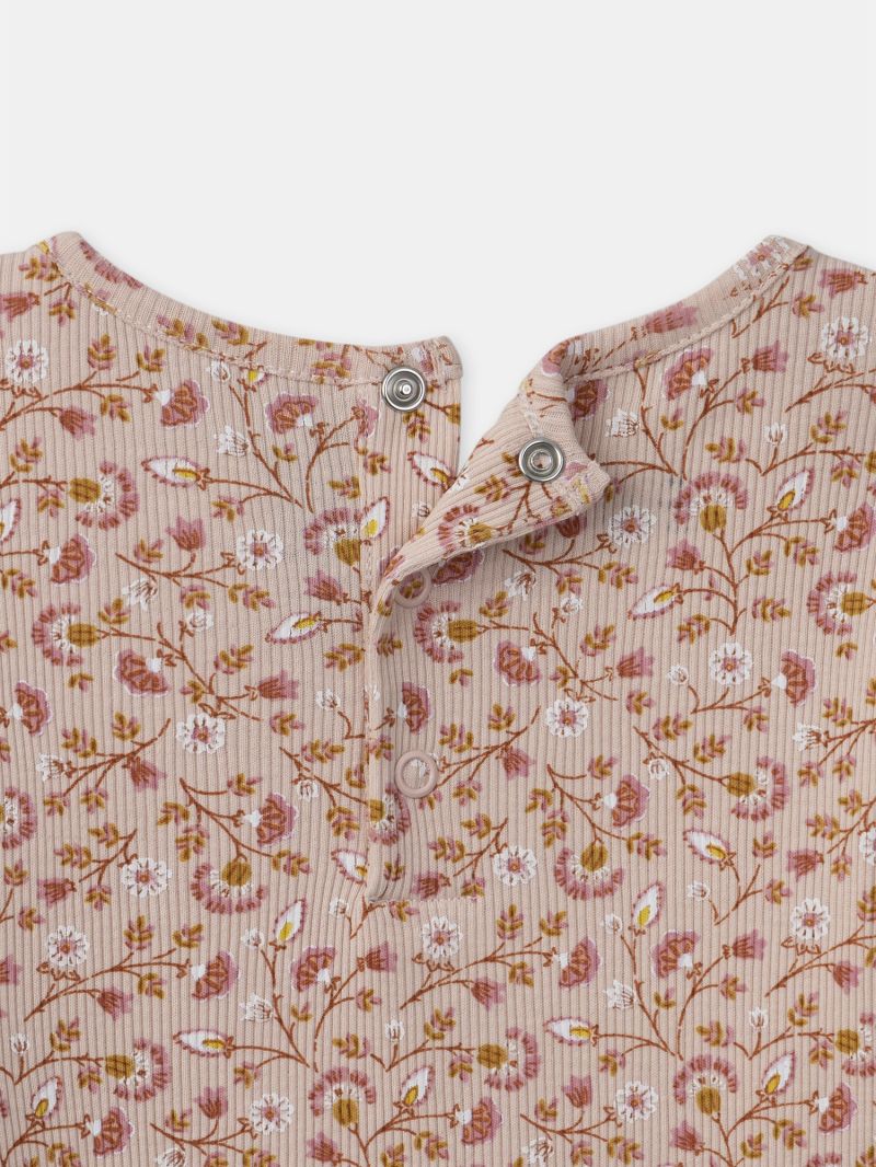 - Материя от рипсен памук в основен розов цвят с десен на цветя