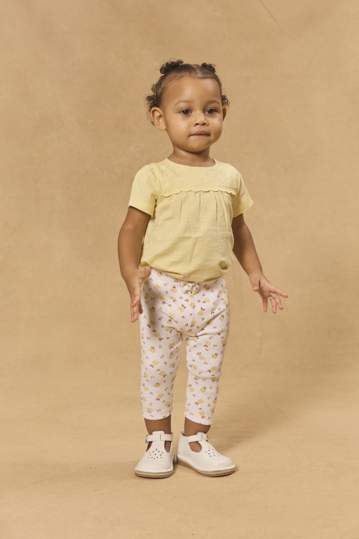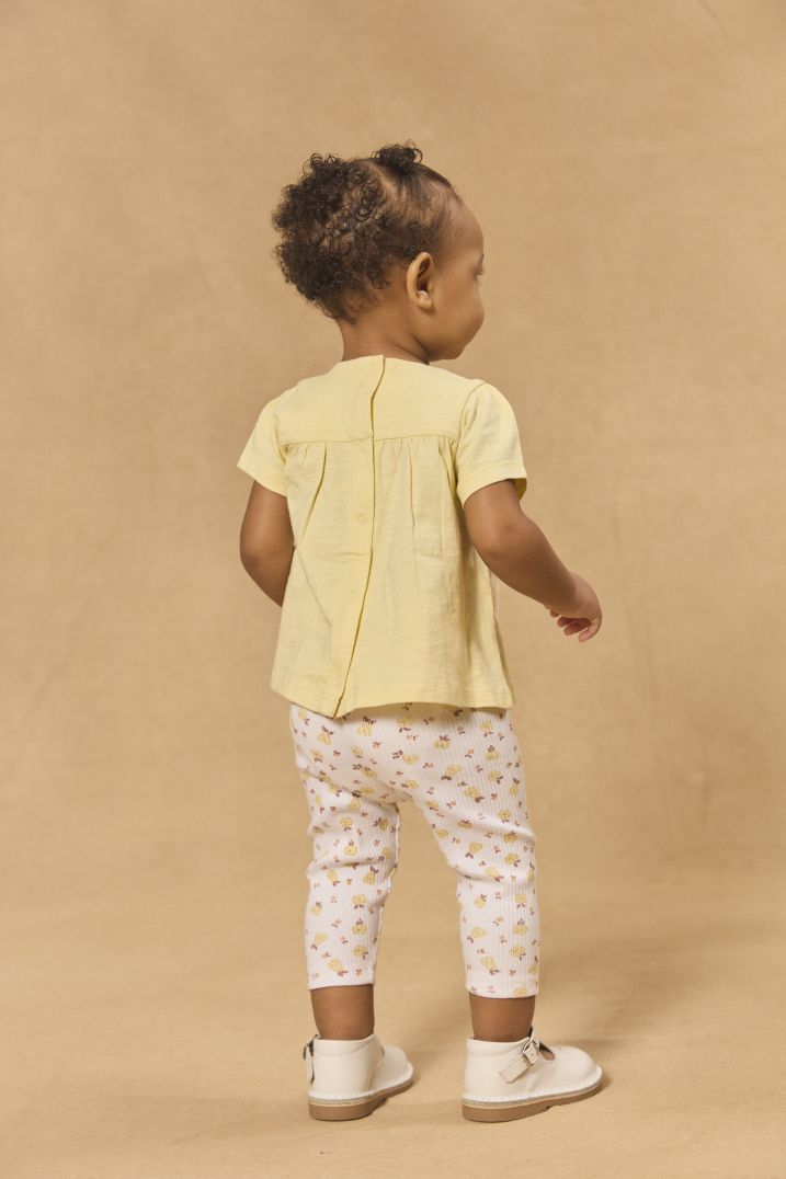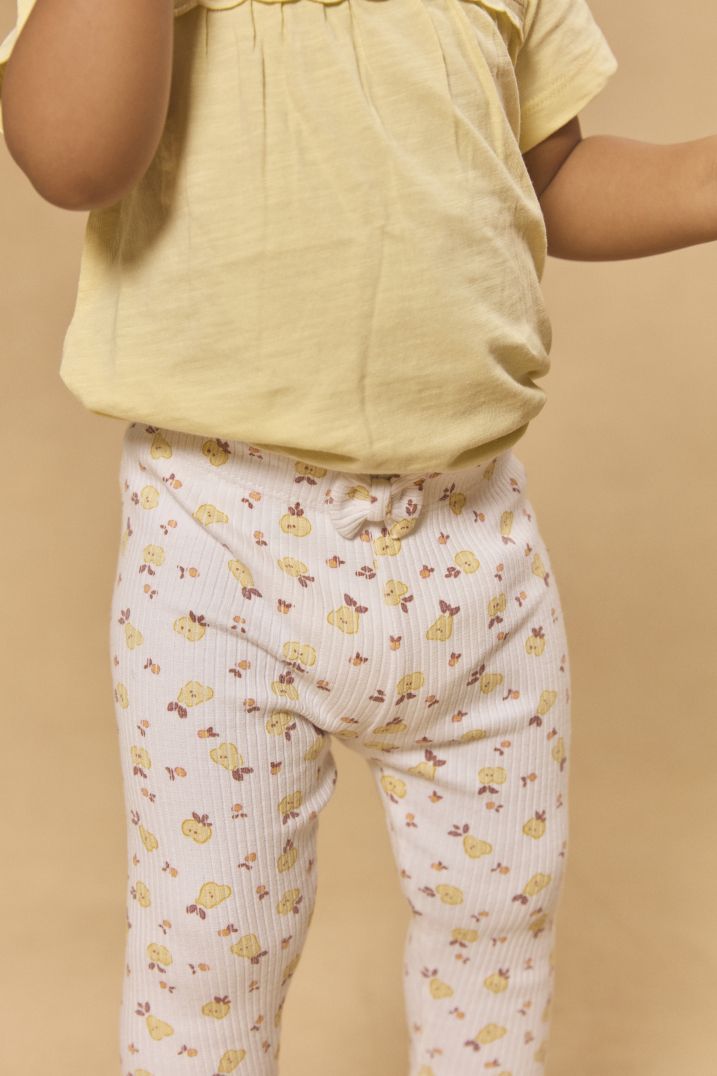 Този клин е с ултрагъвкъв дизайн, които ще осигури безпроблемно движение и комфорт на децата по време на техните активни дейности. Моделът е с плодов десен в лимонено жълт, розов, бледооранжев и люляков нюанс с малка декоративна панделка на талията, която придава нотка на оригиналност и шик. С еластичната си талия, този клин не само улеснява обличането, но и насърчава децата на независимост и самостоятелност по време на обличане.