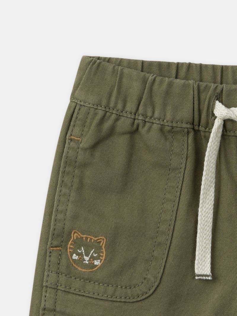 Тези бермуди са идеалният избор за всяко малко момченце. Бродерията с мотив на котешка муцунка придава закачлив и игрив акцент а еластичната талия на бермудите прави обличането лесно, като по този начин помага на вашето малко момче да развива своята независимост. Съчетава се перфектно със светла риза за свеж и стилен облик.