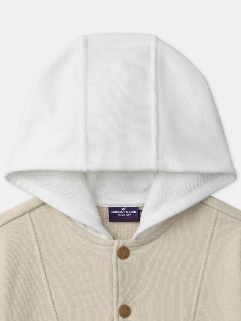 - Контрастна качулка и 2 обкнтени предни джоба в цвят екрю