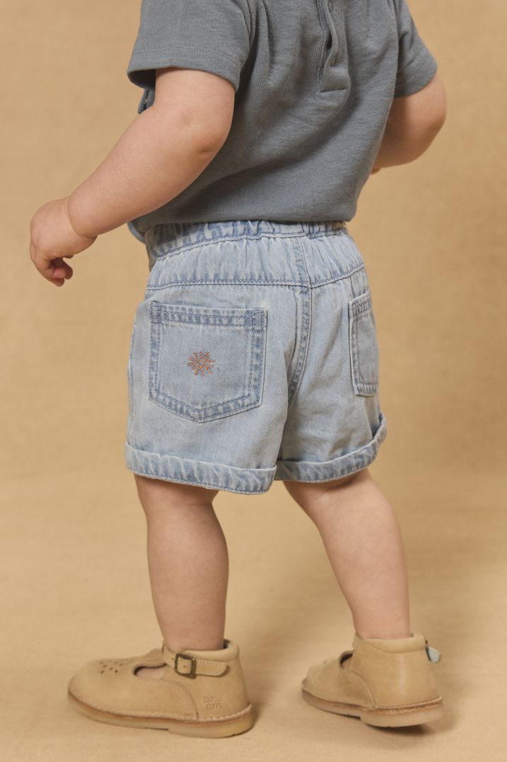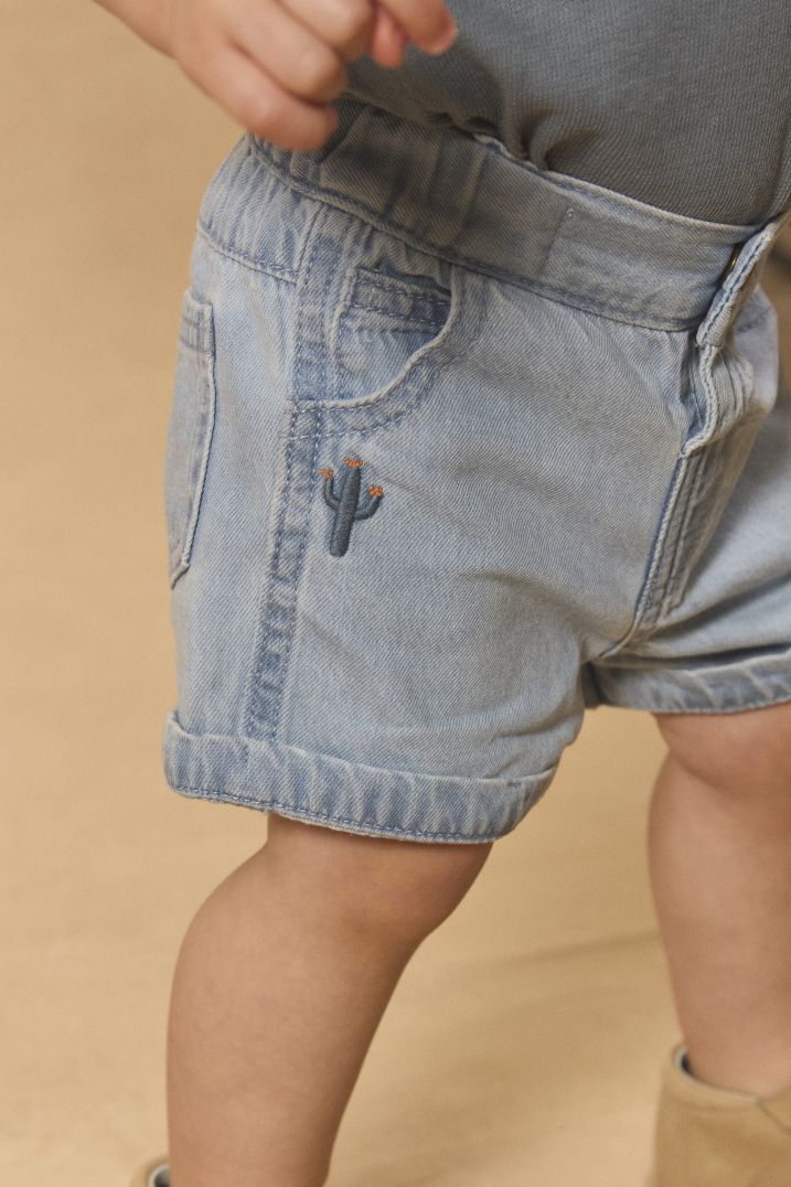 Този очарователен къс панталон от деним е идеалният избор за всяко малко момченце, като осигурява свобода на движение и комфорт през целия ден. С 3 предни джоба, които предлага практично място за съхранение на малки съкровища. Бродираните мотиви на кактус отпред и слънце отзад придават забавна, лятна нотка на късите панталони. Малката текстилна апликация с надпис Sergent Major на пгърба гарантира качеството и автентичността на продукта. С еластична талия, тези къси панталонки осигуряват удобно и сигурно прилягане за вашето бебе. Обърнатите краища на крачолите добавят допълнителна нотка стил към ансамбъла.