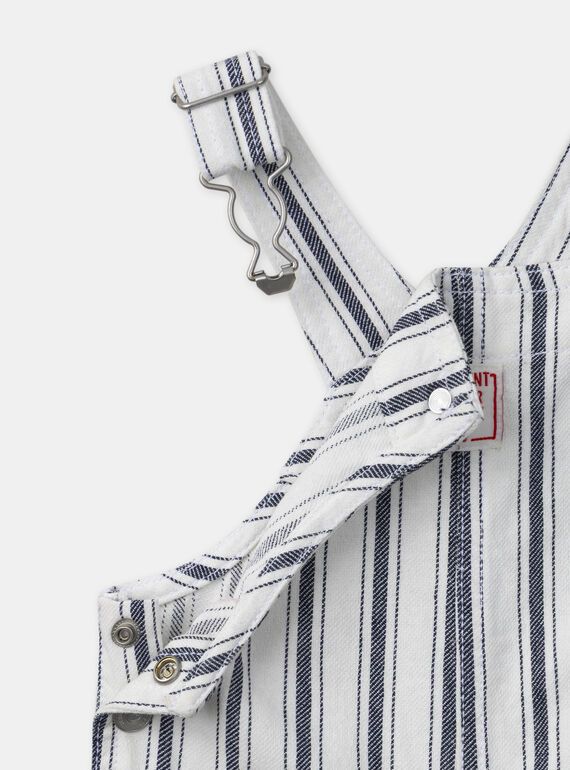 - Материя от тъкан памук в основен цвят екрю с десен на тъмносини райета