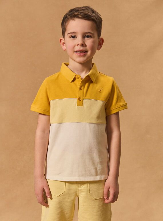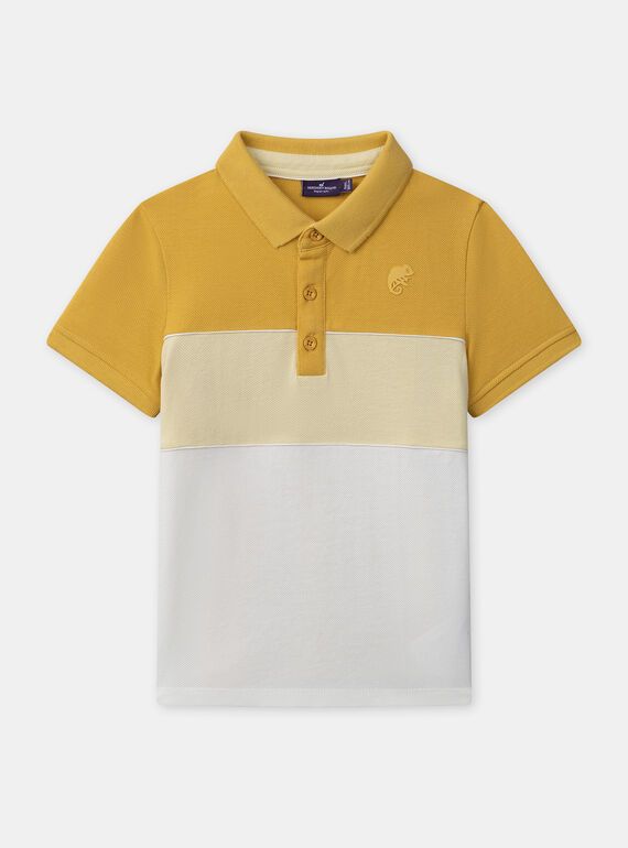 Тази поло тениска ще добави стил към гардероба на вашето дете. С къси ръкави и игра от цветове - нюанси на екрю и жълто тя носи в себе си духа на спортната елегантност. Допълнителен акцент е малкия мотив на хамелеон на гърдите, който допълва нейния неповторим вид. Този модел Polo е не само стилен, но и изключително удобен, готов да придружи вашето дете във всичките му приключения. Може да го съчетаете както със слим панталони за един по-елегантен вид, така и с карго модел за по-спортно излъчване.