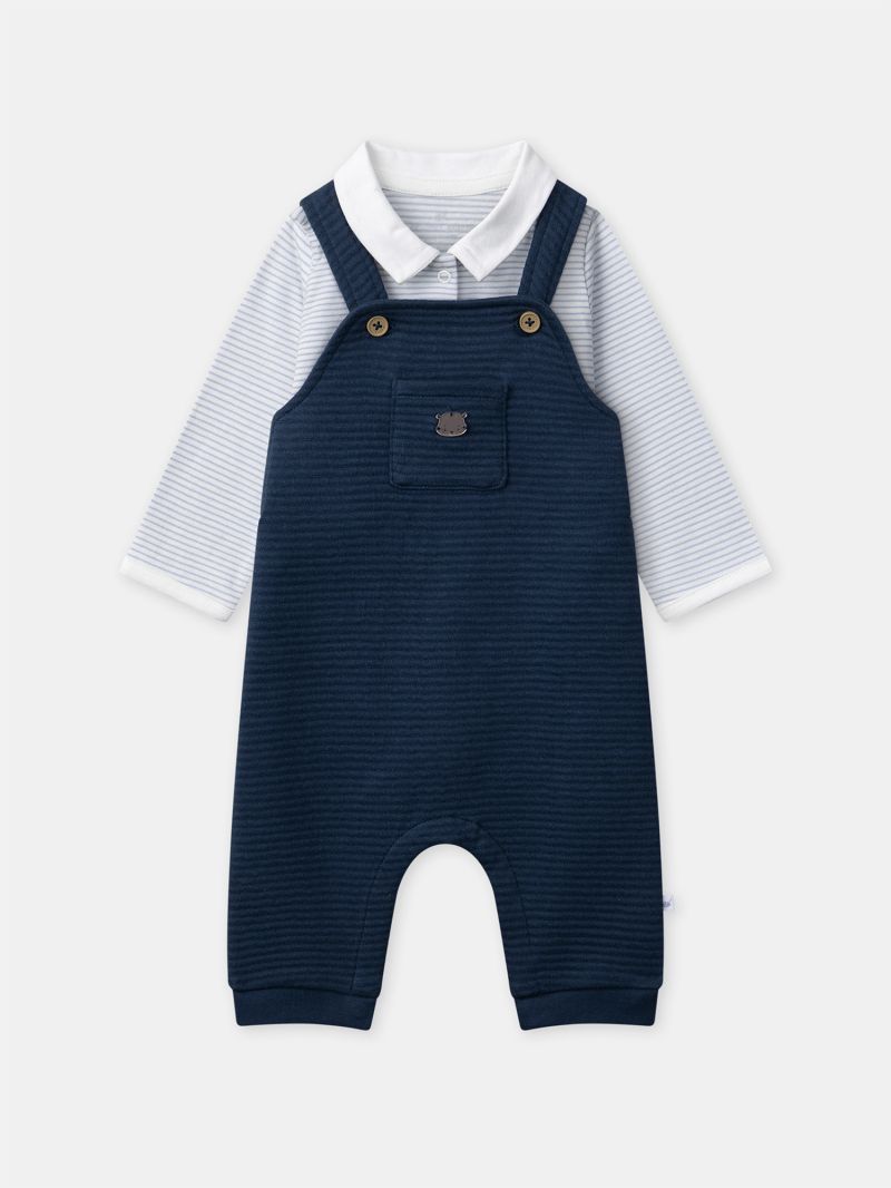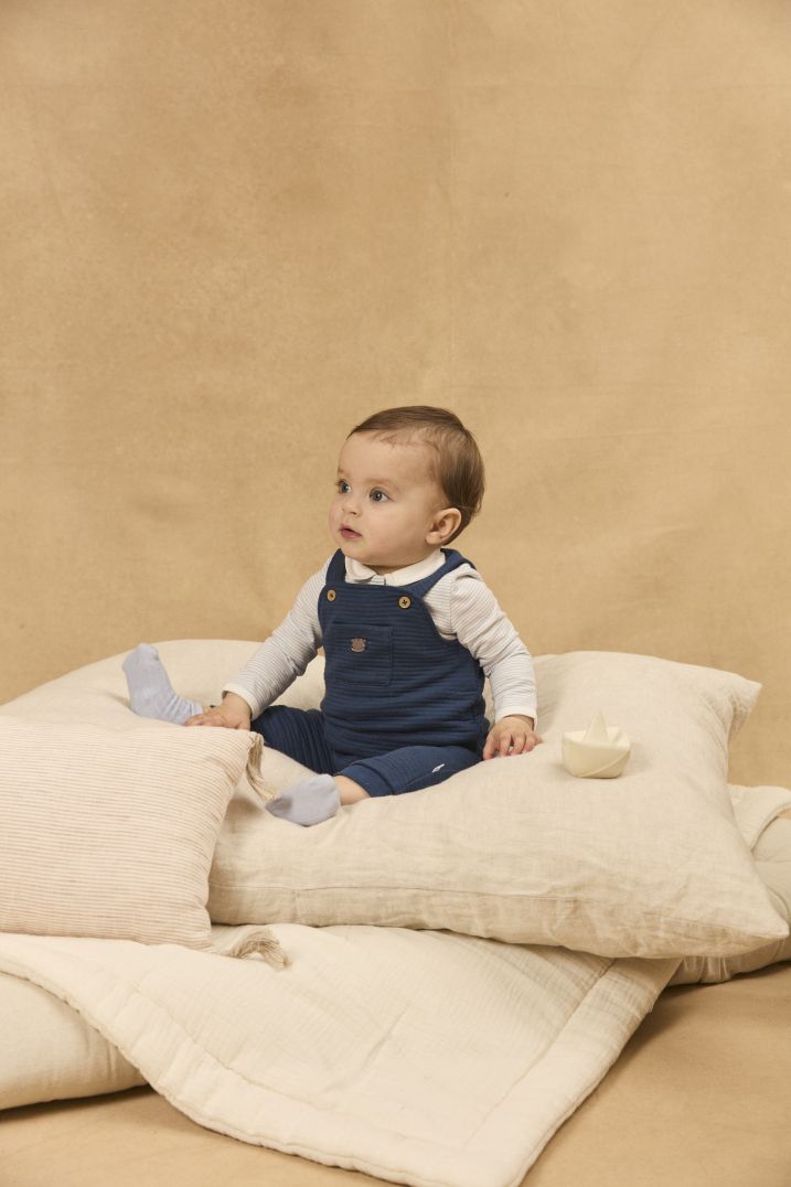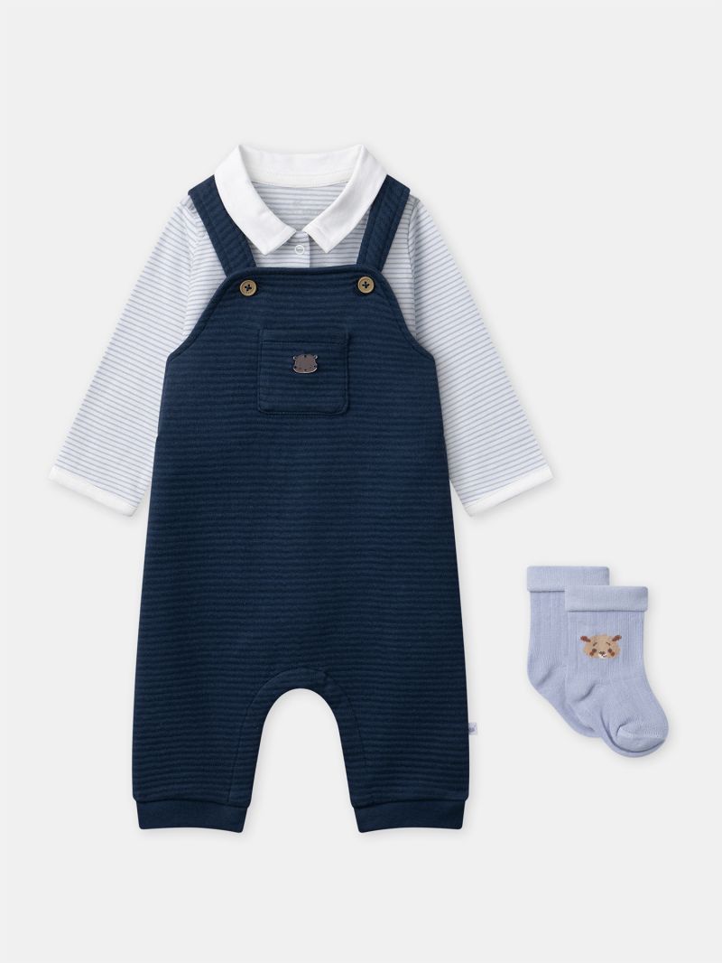 Комплект от три части, боди, гащеризон и чорапи в син цвят
