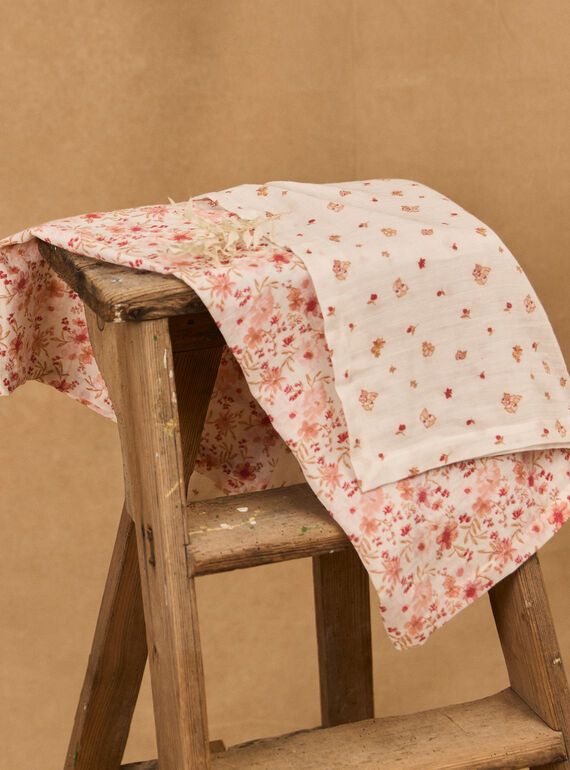 - 2 броя пелени в нюанси на розово, оранжево, червено, коралово и меко кафяво върху екрю фон