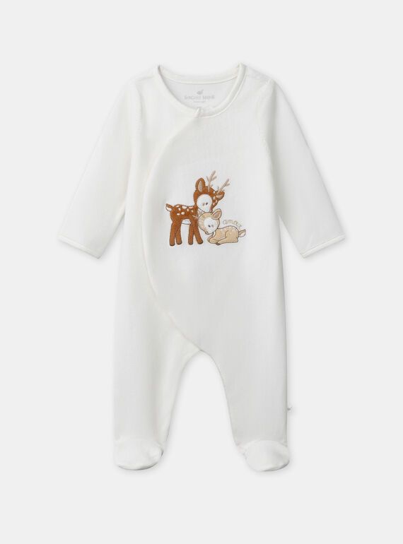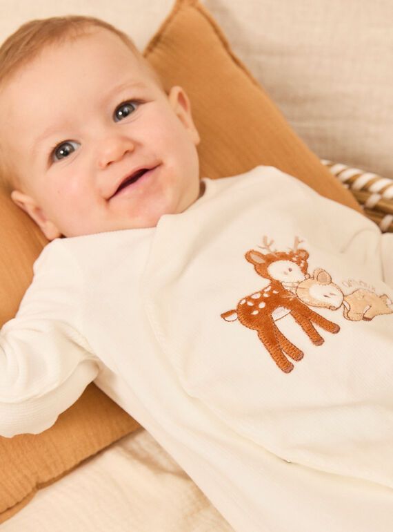 Представяме ви плюшен ромпър в цвят екрю сладък текстуриран мотив на еленчета. Изработен от мека и удобна текстура, идеална за нежната кожа на вашето бебе.