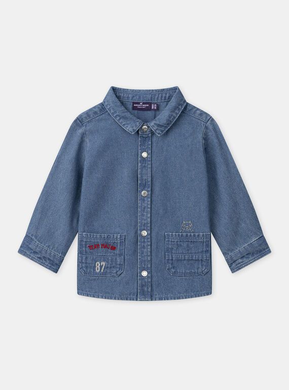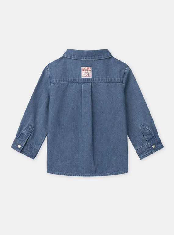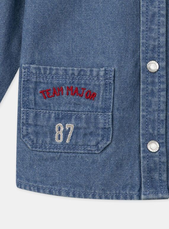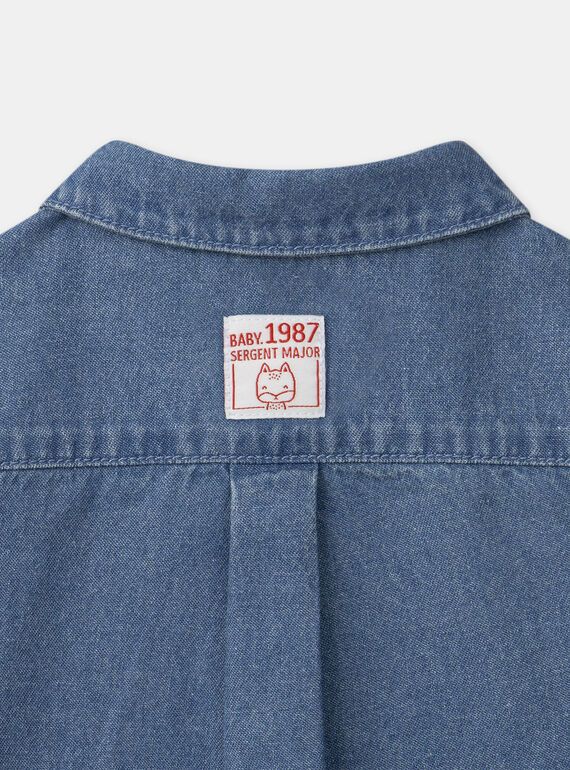 • Дънкова риза от син памучен деним с яка