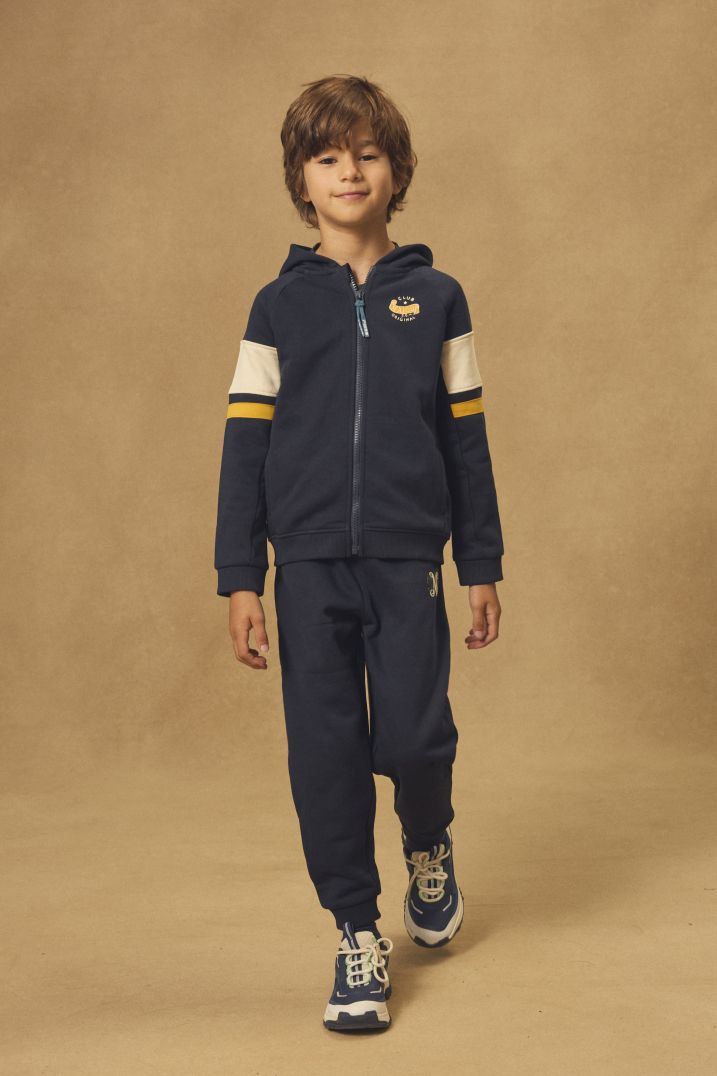 Тoва горнище за джогинг в тъмносин цвят с платки в цвят бяло и жълто, бързо ще стане фаворит в гардероба на вашето дете. Изработено от качествен памук и предлага изключително удобство и свобода на движение. За завършен аутфит, препоръчваме да комбинирате с подходящо долнище!