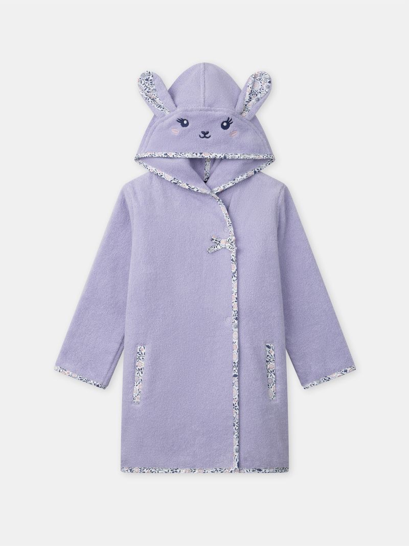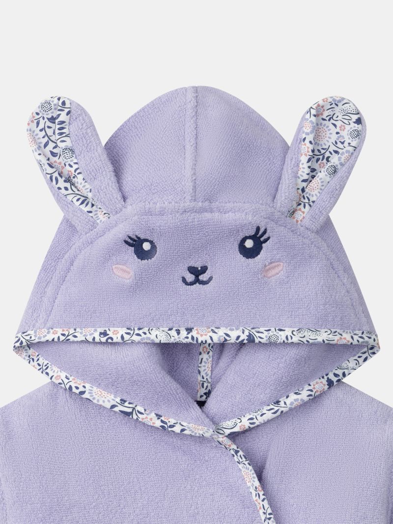 За уютни моменти след баня този лилав хавлиен халат е перфектният избор за вашето момиченце. С два удобни странични джоба и качулка с красиви бродирани ушички. Идеален за топлина и комфорт след всяка баня, за всяка малка принеса.