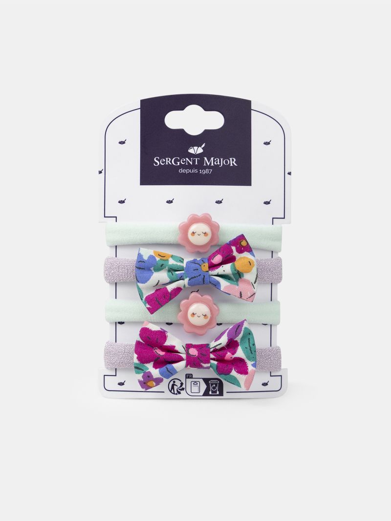 - 2 броя ластици в лилав цвят, с 3D панделка с флорални акценти