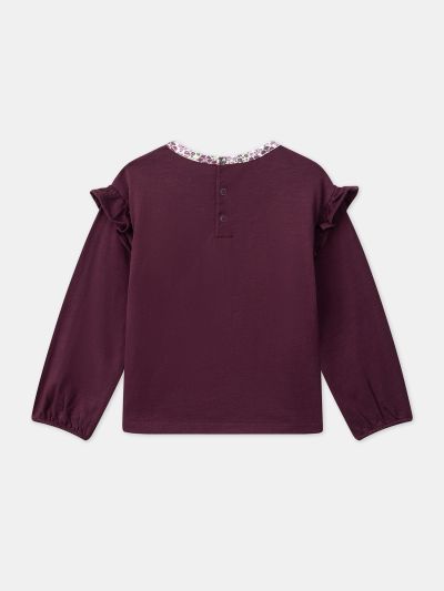 - Кръгло деколте с финиш с десен на цветя, с декоративна панделка