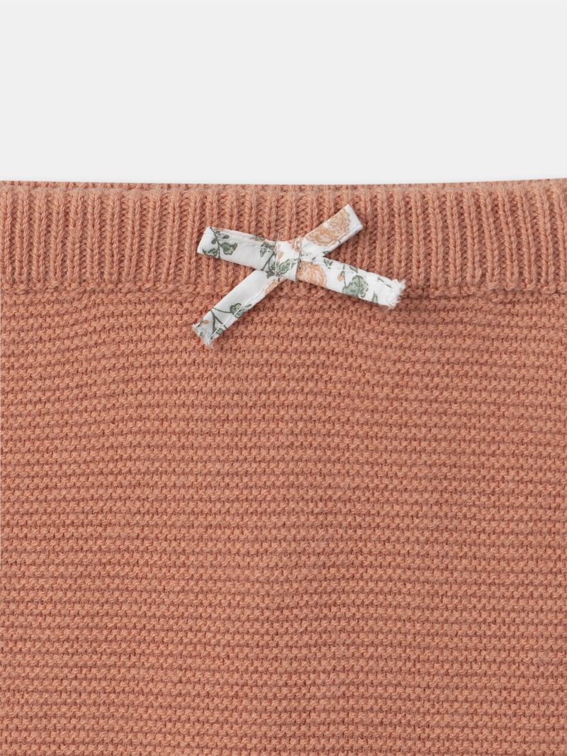 • Материя от мек тъкан памук в съчетание с вълна в основен прасковен цвят