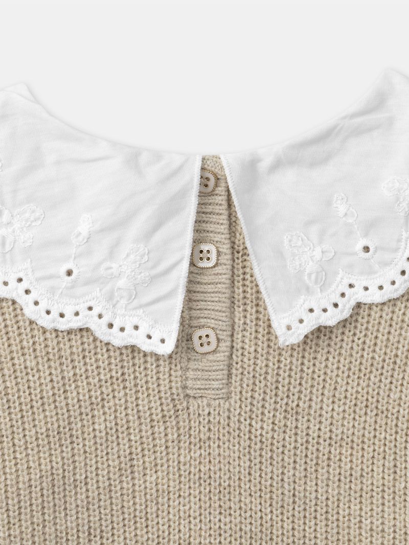 Този бежов пуловер е идеален избор за малките дами, които обичат свежия и стилен вид. Със своята декоративна яка, той придава настроение и елегантност на всяко облекло. Този пуловер е идеален за по-хладните дни, съчетавайки топлина и стил.