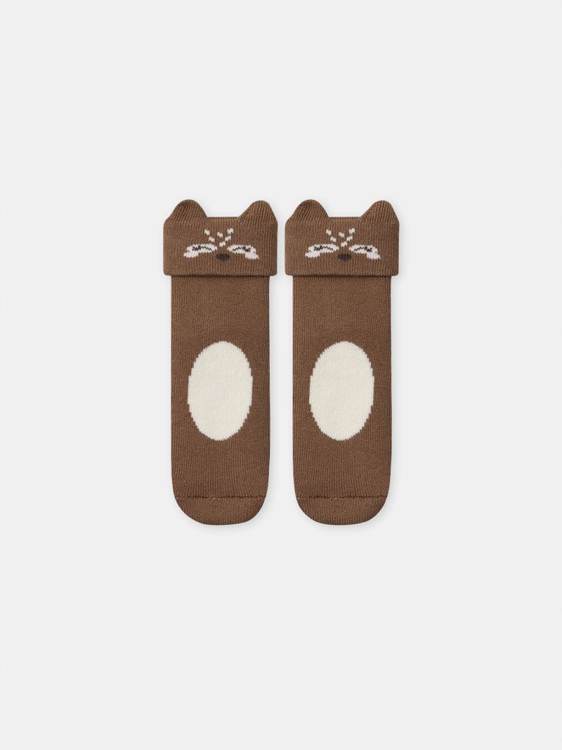 - Чорапи от мека памучна смес с фина плетка в основен кафяво и бежово с мотиви