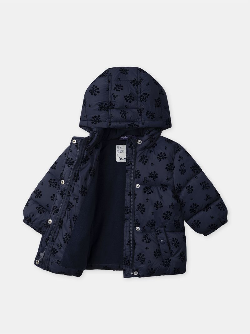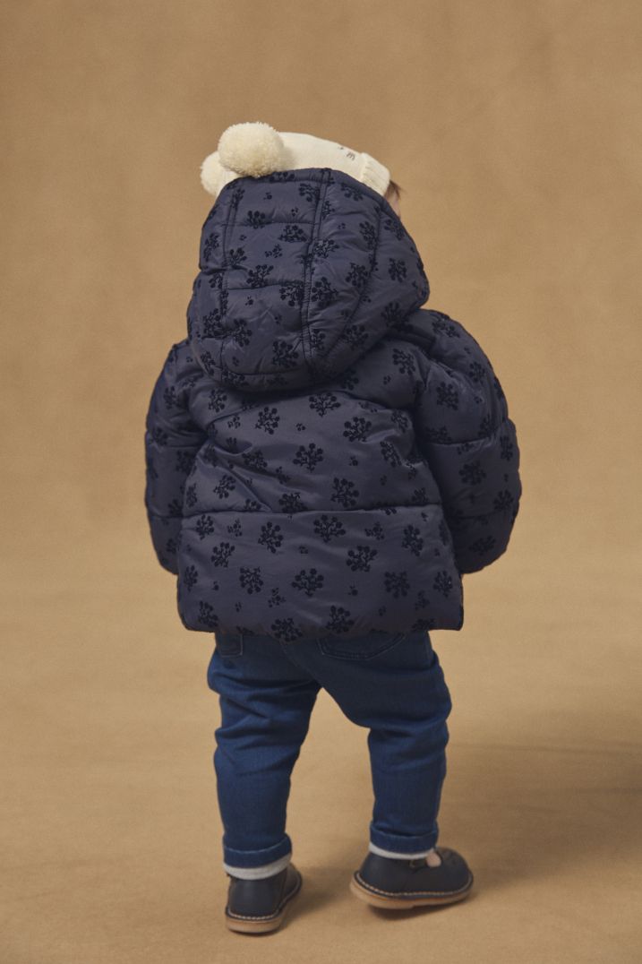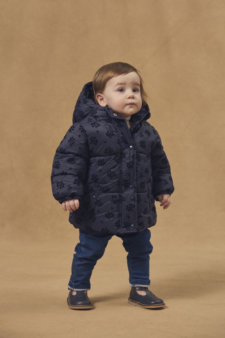 - Откопчаване с цип с предпазител за брадичката по пължината отпред, платка с копчета тик-так с ефектен мотив