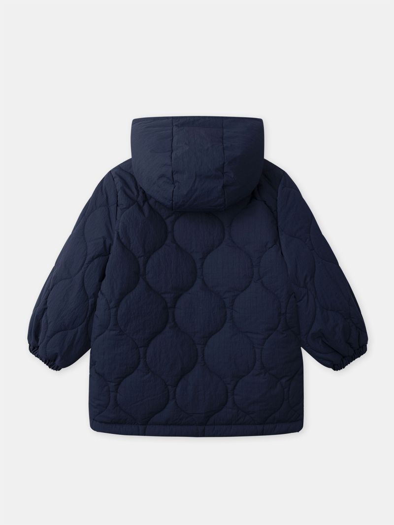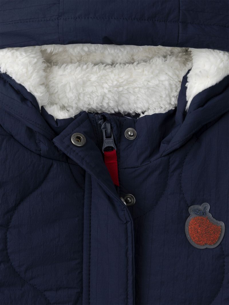- Капитонирано, ватирано яке в основен тъмносин цвят, с топла подплата с еко косъм