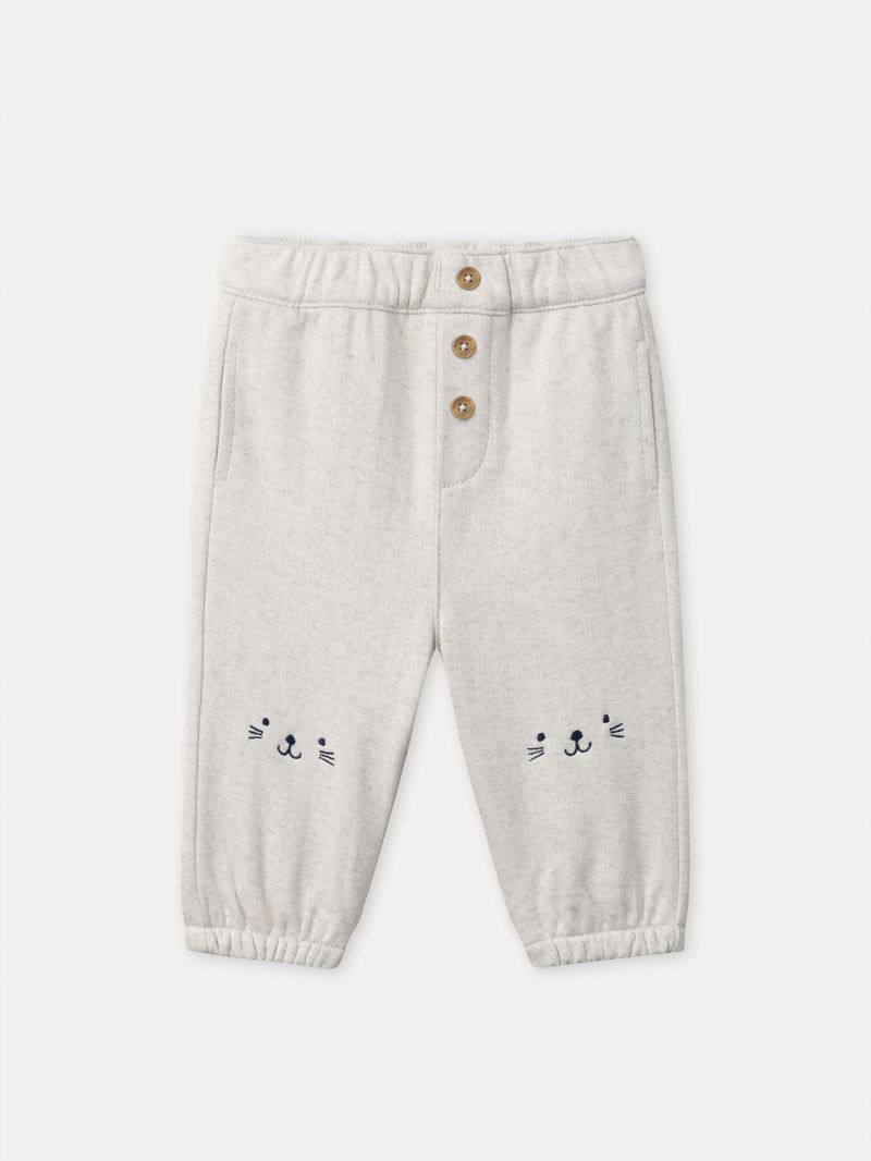 Изберете нашият удобен панталон в цвят екрю, идеален за дни на игри и приключения. Задният джоб е украсен с бежова апликация а коленете със загадачни мотиви на муцунка на мече, които добавят закачлив акцент към дизайна. С вградена подплата за допълнителен комфорт, еластична талия и фиксирани маншети, тези панталон осигурява перфектно прилягане и комфорт за вашето малко момче. Удобни и стилни, те са идеалния избор за всички ежедневни активности.