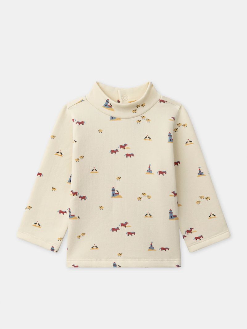 Екрю блуза с дълъг ръкав и животински принт за бебе момче