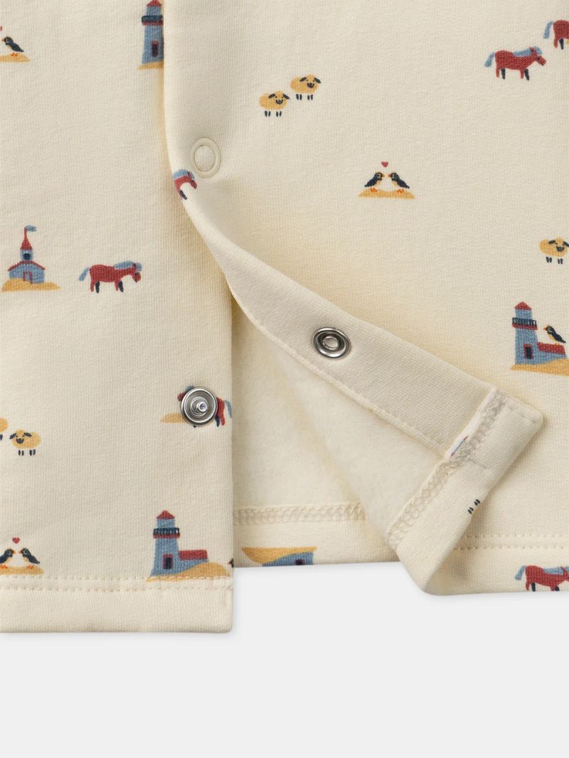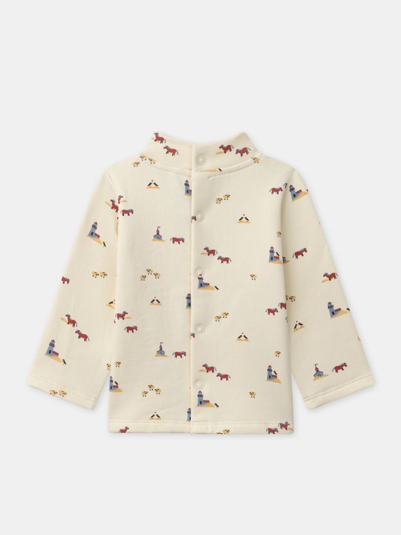 Тази блуза е създадена за зимата и е идеална за ежедневието на бебето. Мекото трико осигурява комфорт, а тик-так копчетата на гърба правят обличането лесно. Животинският принт и контрастните кантове добавят игрив и сладък акцент.
