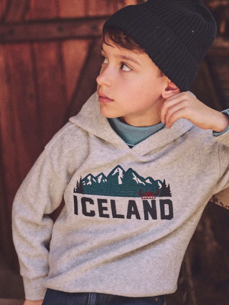 Този сив суитшърт е идеален за активни момчета през студените дни. Меката му материя и удобната качулка осигуряват топлина, а модерните детайли добавят стил към всяко ежедневие.